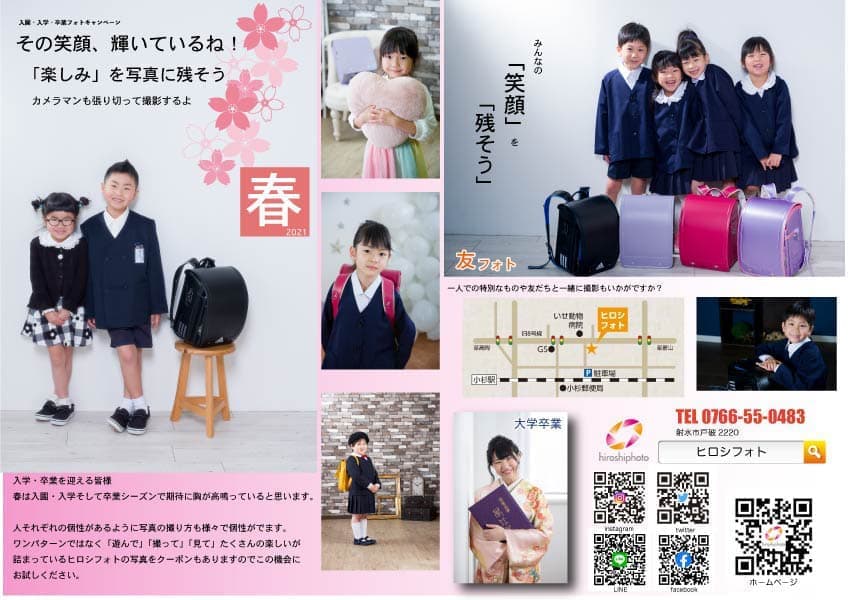 チラシをお持ちいただくか、来店の際にホームページをご覧になった旨を伝えていただければクーポンを適用していただいてお得に撮影ができます。