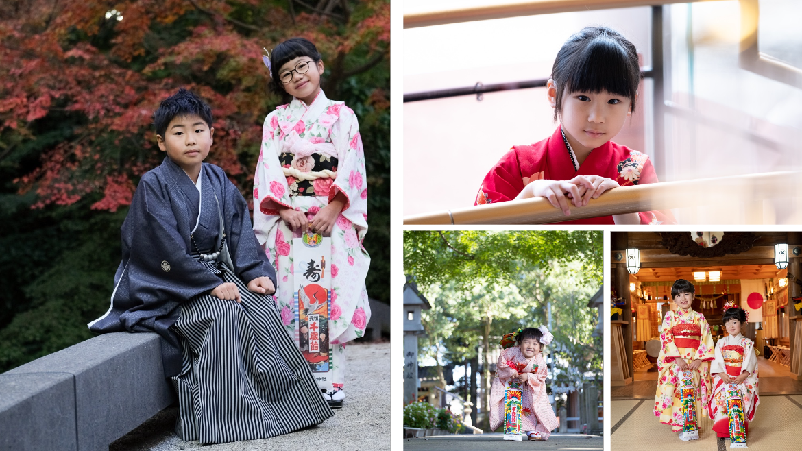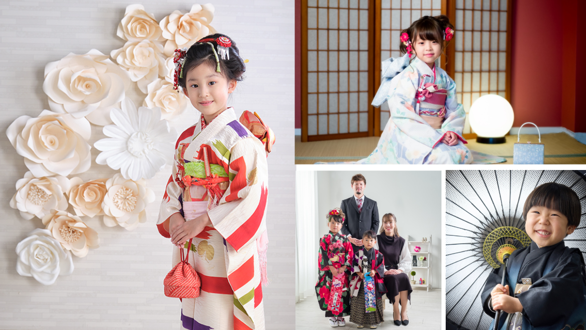 七五三は主に11月15日に行われる行事です。 必ずしも11月15日ではなく、10月中旬から11月前半の吉日や土日祝日などを利用してお祝い・お参りを行い撮影することが多いです。ゆったりと時間をかけて神社でお参りを行い、また子供の機嫌を考えてあえて時期をずらして撮影されるかたもふえてきています。 一般的には女の子は、満三歳、満七歳男の子は、満三歳、満五歳での満年齢でお祝いをするのが一般的ですが年の近い兄弟姉妹がいる場合、上の子の満年齢にあわせて下の子は数え年で、一緒に七五三を祝う方法もよくあります |
